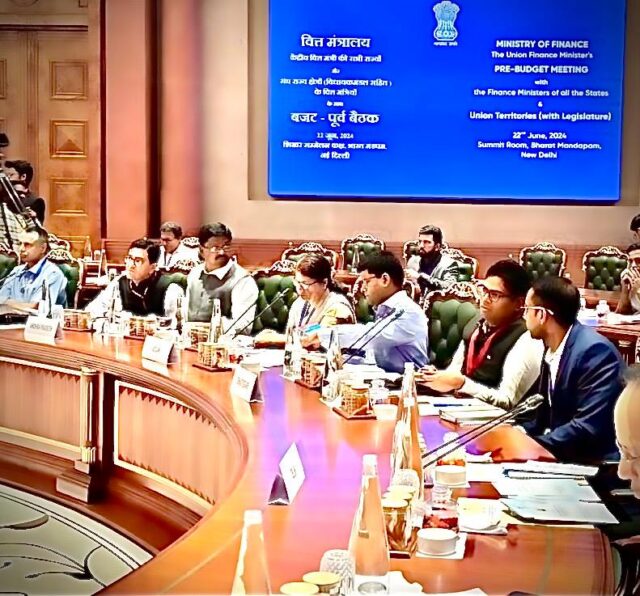 नई दिल्ली में आयोजित बजट पूर्व बैठक में मुख्यमंत्री श्री विष्णु देव साय की मंशा के अनुरूप छत्तीसगढ़ की विकास योजनाओं के संबंध में वित्तमंत्री श्री ओपी चौधरी ने महत्वपूर्ण सुझाव दिए। उन्होंने राज्यों को विशेष सहायता की राशि, स्टेट कैपिटल रीजन के विकास व राज्य में रेल नेटवर्क के विस्तार सहित राज्यहित के कई महत्वपूर्ण प्रस्ताव व सुझाव रखे। दिल्ली के भारत मंडपम, प्रगति मैदान में आयोजित बजट पूर्व बैठक में केंद्रीय वित्तमंत्री श्रीमती निर्मला सीतारमण, केंद्रीय वित्त राज्यमंत्री श्री पंकज चौधरी के साथ ही अन्य राज्यों के वित्तमंत्री उपस्थित थे।