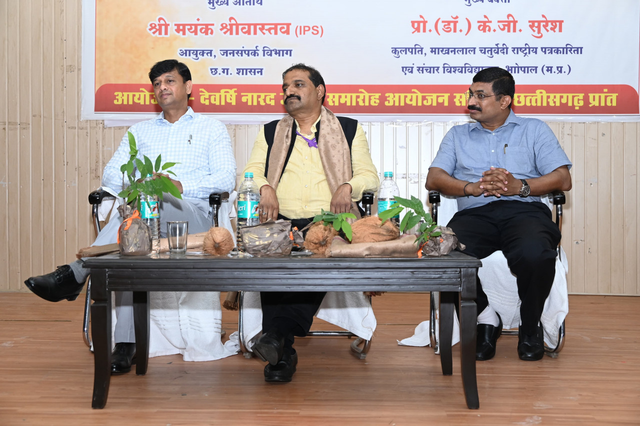 मुख्य अतिथि श्री मयंक श्रीवास्तव ने इस अवसर पर कहा कि नारद ब्रह्मांड के पहले पत्रकार थे, वे रामायण और महाभारत जैसी रचना के प्रेरणास्त्रोत भी थे। भागवत पुराण में देवऋषि नारद के प्रसंग आते हैं, जिससे पता चलता है कि वे कितनी तेजी से सूचनाएं प्रस्तुत करते थे। नारद संवाददाता थे, केवल समस्या नहीं बताते थे बल्कि समस्याओं का समाधान भी देते थे। आयुक्त जनसंपर्क श्री श्रीवास्तव ने बताया कि लोग बहुत जिज्ञासु होते हैं। ऐसे में बहुत जरूरी है कि संचार के माध्यम उन्हें समग्र तस्वीर से परिचित कराएं। समाज में बहुत कुछ बुरा घट रहा है तो बहुत कुछ अच्छा भी हो रहा है। इस सकारात्मकता से परिचित कराना बहुत जरूरी है, जिससे लोगों के मन में आशावादिता विकसित हो, वे बेहतर समाज के निर्माण में जुट पाएं।