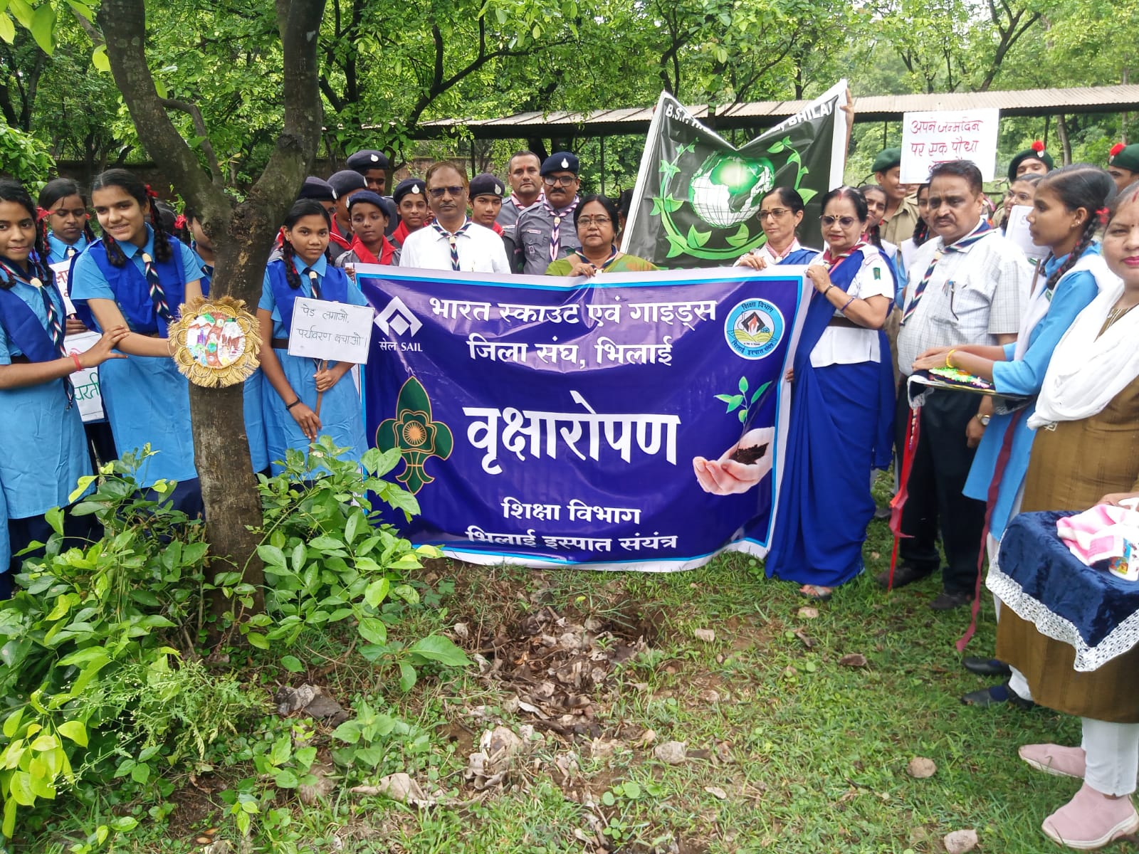 भारत स्काउट एवं गाइड जिला संघ भिलाई द्वारा 08 जुलाई 2024 को बीएसपी उच्चतर माध्यमिक विद्यालय भिलाई सेक्टर -2 स्थित अपने के प्रांगण में एक वृक्षारोपण कार्यक्रम आयोजन किया गया| इस अवसर पर मुख्य अतिथि मुख्य जिला आयुक्त एवं महाप्रबंधक (शिक्षा-टीएसडी) श्रीमती शिखा दुबे एवं विशिष्ट अतिथि जिला आयुक्त (गाइड्स) श्रीमती सुमीता सरकार एवं जिला आयुक्त (स्काउट्स) श्री विजय सिंह पवार द्वारा ‘एक वृक्ष मां के नाम’ अभियान के तहत पौधे लगाकर वृक्षारोपण कार्यक्रम का शुभारंभ किया। इस अवसर पर नीम एवं अशोक के 50 पौधे लगाए गए।