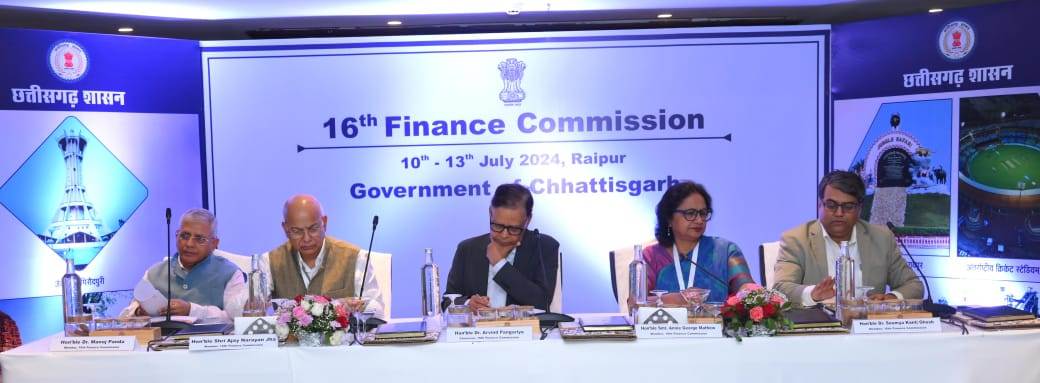 16वें केंद्रीय वित्त आयोग की पंचायत, नगरीय निकाय एवं राजनीतिक दलों के प्रतिनिधियों के साथ आज मेफेयर लेक रिसोर्ट, नवा रायपुर अटल नगर में परिचर्चा का आयोजन किया गया। केंद्रीय वित्त आयोग के अध्यक्ष डॉ. अरविंद पनगढ़िया की अध्यक्षता में आयोजित इस परिचर्चा में आयोग के सदस्य श्री अजय नारायण झा, श्रीमती एन्नी जार्ज मैथ्यू, डॉ. मनोज पांडा, डॉ. सौम्यकांति घोष सहित अन्य अधिकारी उपस्थित थे।