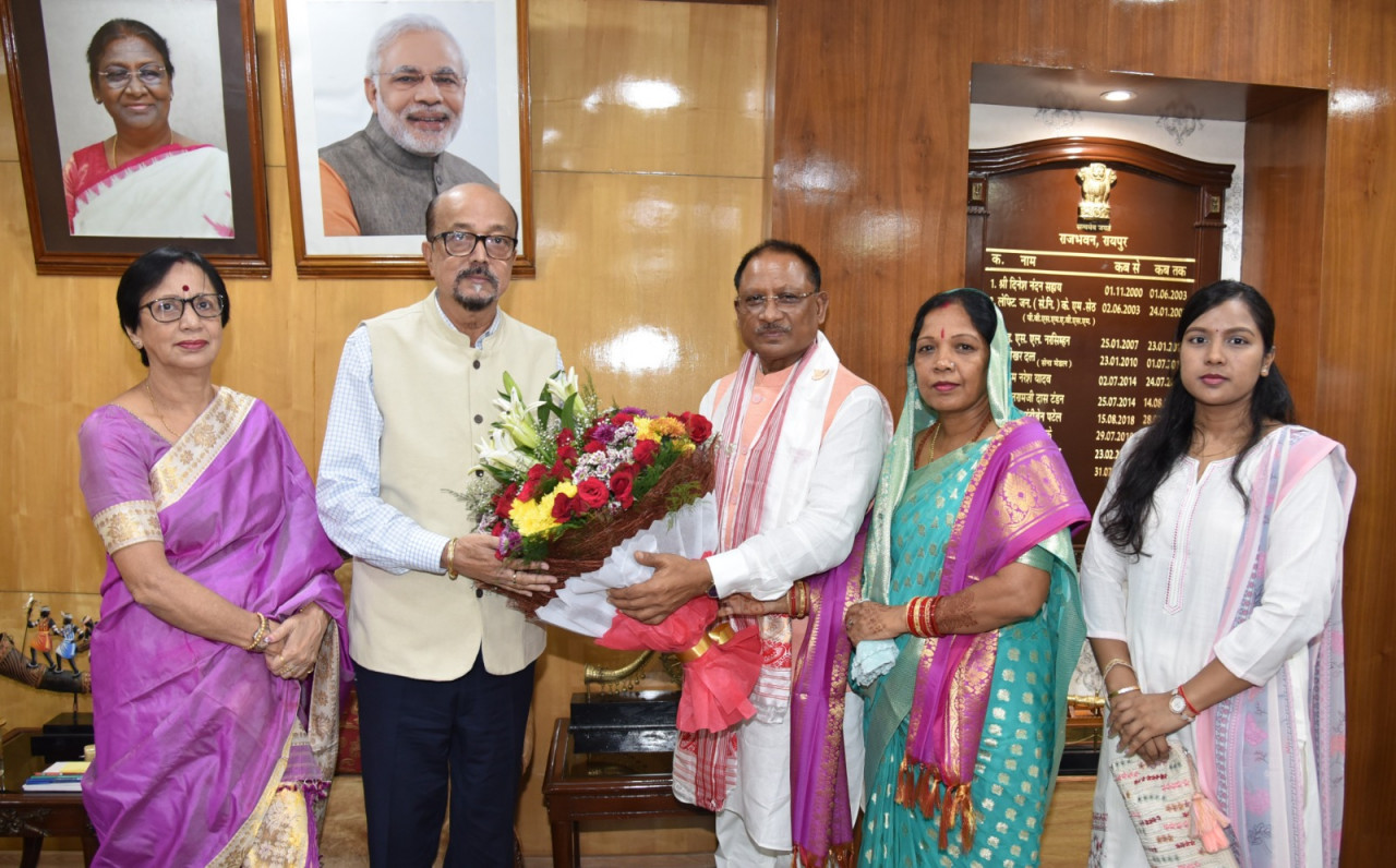 राज्यपाल श्री रमेन डेका से आज यहां राजभवन में मुख्यमंत्री श्री विष्णुदेव साय ने सपरिवार सौजन्य भेंट की। इस अवसर पर राज्य की प्रथम महिला श्रीमती रानी डेका काकोटी, मुख्यमंत्री की धर्मपत्नी श्रीमती कौशल्या साय एवं परिजन उपस्थित थे।