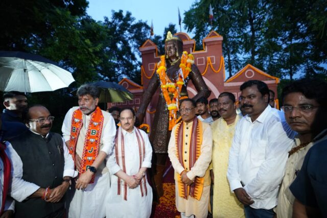 भारतीय जनता पार्टी के राष्ट्रीय अध्यक्ष एवं केंद्रीय स्वास्थ्य मंत्री श्री जगत प्रसाद नड्डा आज अपने एक दिवसीय दौरे पर छत्तीसगढ़ पहुंचे। श्री नड्डा ने यहां राजधानी रायपुर के केनाल रोड, तेलीबांधा स्थित वीरांगना रानी दुर्गावती की प्रतिमा पर माल्यार्पण कर उन्हें नमन किया। इस अवसर पर मुख्यमंत्री श्री विष्णु देव साय, उपमुख्यमंत्री द्वय श्री अरुण साव एवं श्री विजय शर्मा, विधायक श्री किरण सिंह देव, साजा विधायक श्री ईश्वर साहू उपस्थित रहे।