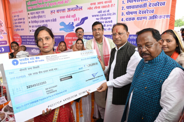 मुख्यमंत्री ने इस दौरान मत्स्य विभाग से 05 हितग्राहियों को जाल और आइस बॉक्स और दो हितग्राही को केसीसी कार्ड का वितरण, पशुपालन विभाग से दो हितग्राही में से एक हितग्राही को राज्य डेयरी उद्यमिता के तहत सब्सिडी राशि साठ हजार का राशि चेक और एक हितग्राही को मुर्गीपालन हेतु केसीसी कार्ड, कृषि विभाग से दो हितग्राही को इलेक्ट्रिक पंप और उद्यानिकी विभाग से दो हितग्राहियों को केसीसी कार्ड का वितरण किया। महिला एवं बाल विकास विभाग के अंतर्गत हितग्राहियों में सक्षम महिला योजना के तहत हितग्राही रूमा तिवारी को एक लाख बीस हजार राशि और महिला कोष से हितग्राही समूह चेतना महिला समूह को पचास हजार राशि चेक ऋण वितरण, दो गर्भवती माताओं की गोद भराई, दो बच्चों का अन्नप्राशन, एक एनीमिया मुक्त महिला श्रीमती आशा कुशवाहा और एक कुपोषण मुक्त बच्चा चार वर्षीय मयंक विश्वकर्मा बच्चे को सुपोषण टोकरी का वितरण किया गया। समाज कल्याण विभाग के तहत छह हितग्राहियों को व्हीलचेयर एवं छड़ी का वितरण किया।