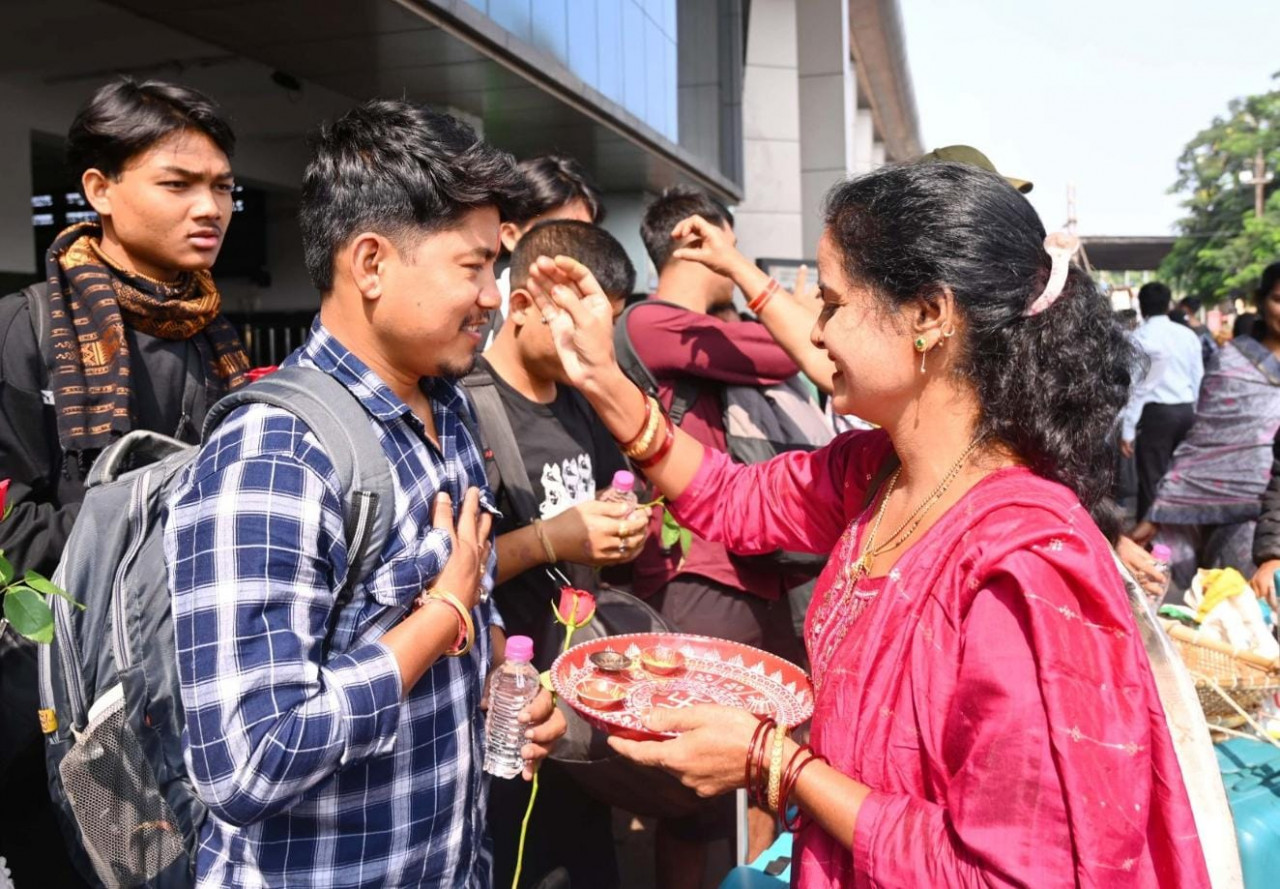 जनजातीय गौरव दिवस पर राजधानी रायपुर में 14-15 नवम्बर को आयोजित दो दिवसीय अंतरराज्यीय आदिवासी नृत्य उत्सव में असम के कलाकार रेट-किनॉन्ग और अरुणाचल प्रदेश का दल गेह पदम ए ना-न्यी लोक नृत्य प्रस्तुत करेंगे। उत्सव में शामिल होने रायपुर पहुंचने पर रेलवे स्टेशन पर कलाकारों का तिलक लगाकर स्वागत किया गया।