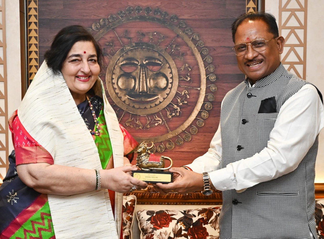मुख्यमंत्री श्री विष्णु देव साय से आज छत्तीसगढ़ विधानसभा स्थित उनके कक्ष में पद्मश्री अनुराधा पौडवाल ने सौजन्य भेंट की। मुख्यमंत्री श्री साय ने छत्तीसगढ़ आगमन पर शॉल और बेल मेटल की नन्दी भेंट कर उनका स्वागत और अभिनंदन किया। मुख्यमंत्री श्री साय और पद्मश्री अनुराधा पौडवाल के मध्य छत्तीसगढ़ की लोककला, गीत-संगीत और संस्कृति को लेकर विस्तृत चर्चा हुई। इस अवसर पर विधायक और पद्म श्री अनुज शर्मा उपस्थित थे।