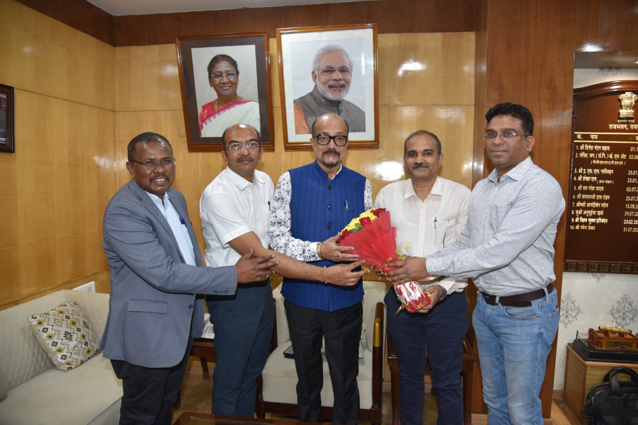 राज्यपाल श्री रमेन डेका से आज राजभवन में इंडियन मेडिकल एसोसिएशन, छत्तीसगढ़ के नवनियुक्त अध्यक्ष डॉ. कुलदीप सोलंकी एवं कार्यकारिणी के अन्य पदाधिकारियों ने सौजन्य भेंट की। उन्होंने राज्यपाल को बताया कि आईएमए द्वारा सिकलसेल के हाईरिस्क वाले मरीजों के चिन्हांकन, आदिवासी समुदाय में हृदय एवं लीवर से संबंधित बीमारियों पर शोध एवं उचित इलाज की योजना बनाई गई है। इसके लिए आईएमए आवश्यक चिकित्सा संसाधन की उपलब्धता सुनिश्चित करेगा। राज्यपाल श्री डेका ने उनकी योजना की सराहना की और कहा कि वे इन कार्यों के लिए हर संभव मदद करेंगे। रायपुर में प्रस्तावित आईएमए टॉवर के भूमिपूजन कार्यक्रम में आईएमए के अध्यक्ष ने मुख्य अतिथि के तौर पर राज्यपाल को आमंत्रित भी किया। इस अवसर पर आईएमए के पदाधिकारी डॉ. संजीव श्रीवास्तव, डॉ. सुरेंद्र शुक्ला व डॉ. केतन शाह भी उपस्थित थे।
