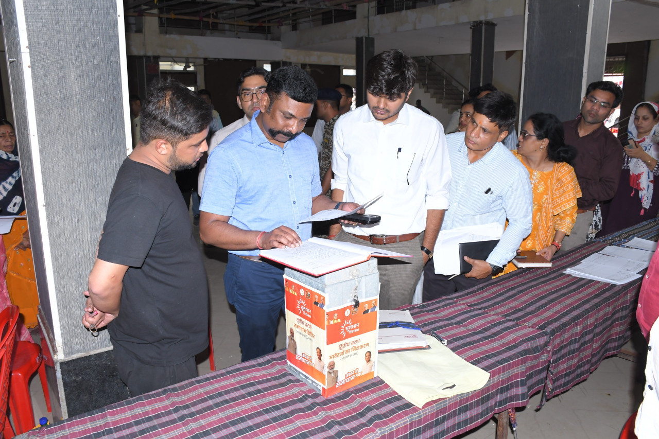मुख्यमंत्री श्री विष्णुदेव साय के निर्देशानुसार मुंगेली जिले में सुशासन तिहार का आयोजन प्रभावी ढंग से किया जा रहा है। इस अभियान के तहत आम नागरिकों की समस्याओं के समाधान हेतु 11 अप्रैल तक आवेदन लिए जा रहे हैं। व्यवस्था की निगरानी और आमजन से संवाद के उद्देश्य से मुंगेली जिले के प्रभारी सचिव डॉ. एस. भारतीदासन ने आज नगरीय निकायों एवं ग्रामीण क्षेत्रों का दौरा किया। निरीक्षण के दौरान उन्होंने नगर पालिका मुंगेली के सामुदायिक भवन में समाधान पेटी, आवेदन पंजी सहित अन्य व्यवस्थाओं का अवलोकन किया। उन्होंने आवेदकों से मुलाकात कर उनकी समस्याओं की जानकारी ली। निरीक्षण के दौरान ही आवेदिका श्रीमती पायल पंजवानी को जन्म प्रमाण पत्र एवं श्रीमती पूर्णिमा दीवान को विवाह प्रमाण पत्र प्रदान किया गया।