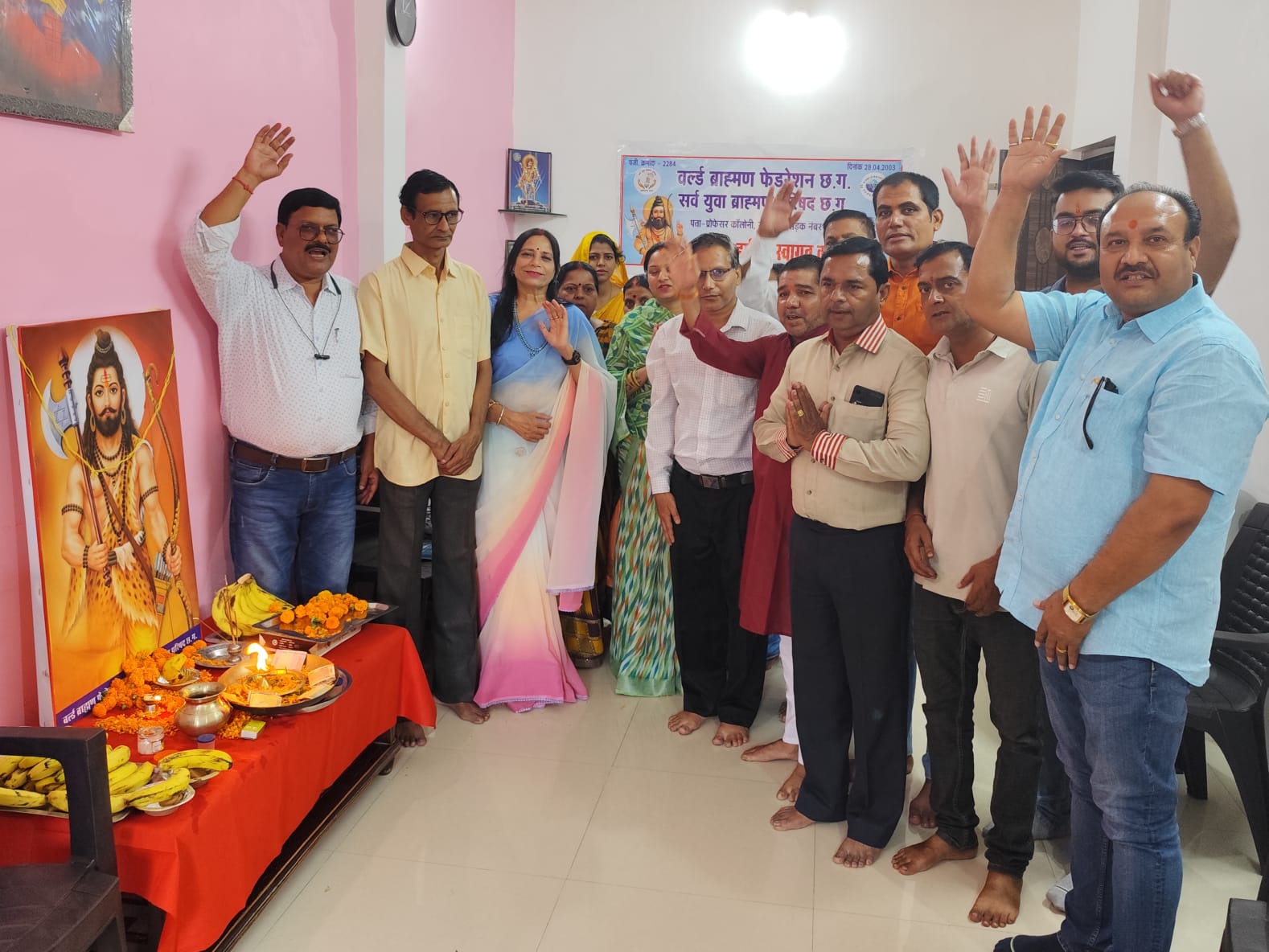 वर्ल्ड ब्राह्मण फेडरेशन एवं सर्व युवा ब्राह्मण परिषद ने भगवान श्री परशुराम जी का जन्मोत्सव प्रदेश अध्यक्ष अरविन्द ओझा, महिला अध्यक्ष नमिता शर्मा द्वारा प्रातः 11.00 बजे प्रदेश कार्यालय, प्रोफेसर कालोनी, रायपुर में विधि विधान से पूजा अर्चना व आरती कर हर्षोल्लास के साथ मनाया. भगवान श्री परशुराम जी की सीख – जीवन में शस्त्र और शास्त्र दोनों ही उपयोगी हैं, का स्मरण किया.