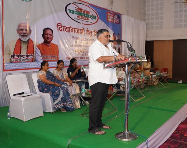 सेवा पखवाड़ा के तहत दिव्यांगजनों को शासन की विभिन्न कल्याणकारी योजनाओं का लाभ दिलाने के लिए समाज कल्याण विभाग द्वारा अम्बिकापुर के राजमोहिनी देवी भवन में जिला स्तरीय दिव्यांगजन शिविर का आयोजन किया गया। शिविर में छत्तीसगढ़ शासन के पर्यटन एवं संस्कृति मंत्री श्री राजेश अग्रवाल ने दिव्यांगजनों से मुलाकात कर उन्हें विभिन्न उपयोगी उपकरण ट्रायसायकल, व्हीलचेयर, श्रवण यंत्र एवं सेंसर छड़ी वितरित की । इस दौरान उन्होंने दिव्यांगजनों से उनका कुशलक्षेम जाना तथा योजनाओं का लाभ लेने प्रोत्साहित किया। उन्होंने दिव्यांगजनों से संवाद कर उनकी आवश्यकताओं के बारे में पूछा तथा निराकरण के लिए संबंधित विभाग के अधिकारियों को निर्देशित किया। शिविर के दौरान 13 ट्रायसायकल, 14 व्हीलचेयर, 06 श्रवण यंत्र तथा 03 सेंसर छड़ी प्रदान की गई।