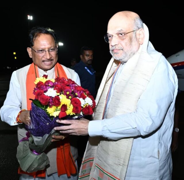 केंद्रीय गृह मंत्री श्री अमित शाह आज छत्तीसगढ़ के दो दिवसीय प्रवास पर राजधानी रायपुर पहुंचे। मुख्यमंत्री श्री विष्णु देव साय ने स्वामी विवेकानंद विमानतल पर पुष्पगुच्छ भेंट कर उनका आत्मीय स्वागत किया।