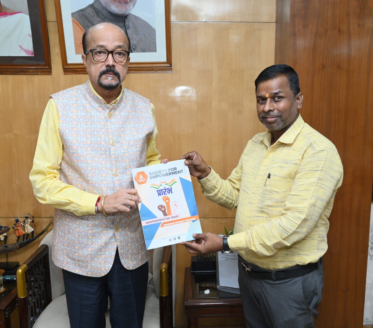 राज्यपाल श्री रमेन डेका को आज राजभवन में ‘‘सोसाइटी फॉर एम्पावरमेंट‘‘ द्वारा प्रकाशित मासिक पत्रिका ‘‘प्रारंभ‘‘ की प्रति भेंट की गई। विशेष पिछड़ी जनजातियों पर केंद्रित इस विशेषांक का संपादन मानवविज्ञानी एवं राज्यपाल के उप सचिव डॉ. रूपेन्द्र कवि द्वारा किया गया है।