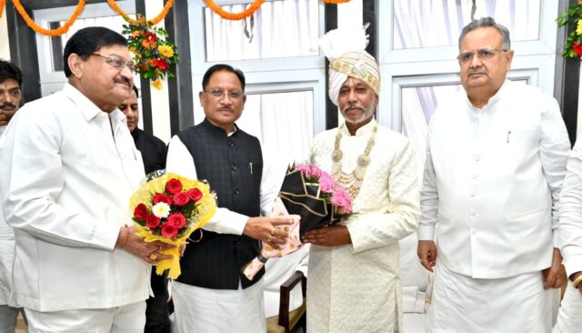 मुख्यमंत्री श्री विष्णुदेव साय कौशल विकास, तकनीकी शिक्षा एवं रोजगार मंत्री गुरु खुशवंत साहेब के नवा रायपुर स्थित नवीन शासकीय आवास के गृहप्रवेश कार्यक्रम में शामिल हुए। मुख्यमंत्री श्री साय के धर्मगुरु गुरु बालदास साहेब जी को उनके जन्मदिन की बधाई एवं शुभकामनाएं देते हुए उन्हें शॉल व पुष्पगुच्छ भेंट किया।