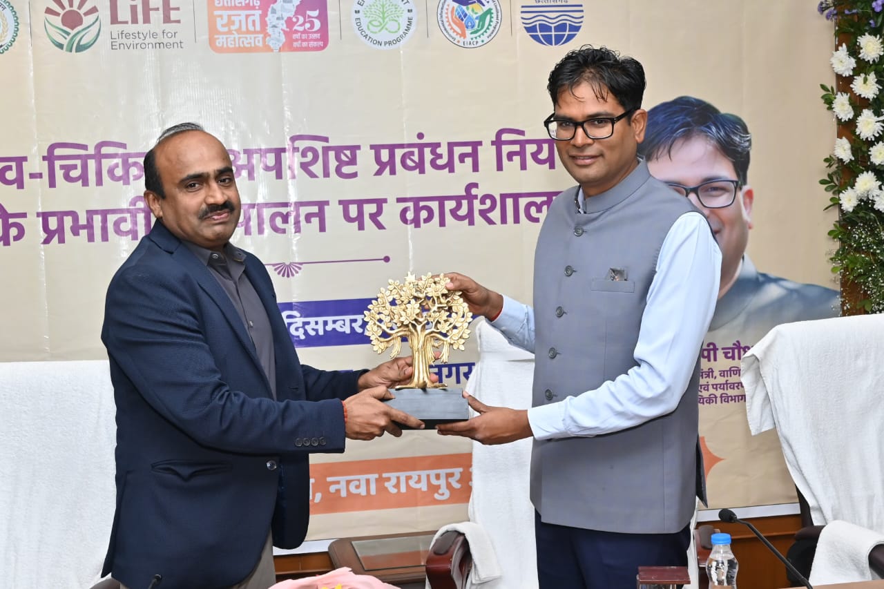 छत्तीसगढ़ पर्यावरण संरक्षण मण्डल द्वारा जैव चिकित्सा अपशिष्ट प्रबंधन नियम, 2016 (संशोधित 2021) के प्रभावी अनुपालन और जागरूकता बढ़ाने के उद्देश्य से आयोजित राज्य स्तरीय कार्यशाला का सफल आयोजन आज नवा रायपुर में हुआ। कार्यशाला के उद्घाटन सत्र में मुख्य अतिथि के रूप में उपस्थित वित्त, वाणिज्य कर, आवास एवं पर्यावरण तथा योजना एवं सांख्यिकी मंत्री श्री ओ.पी. चौधरी ने कहा कि जैव चिकित्सा अपशिष्ट का उचित प्रबंधन केवल स्वास्थ्य संस्थानों की नहीं बल्कि पूरे समाज की सामूहिक जिम्मेदारी है।