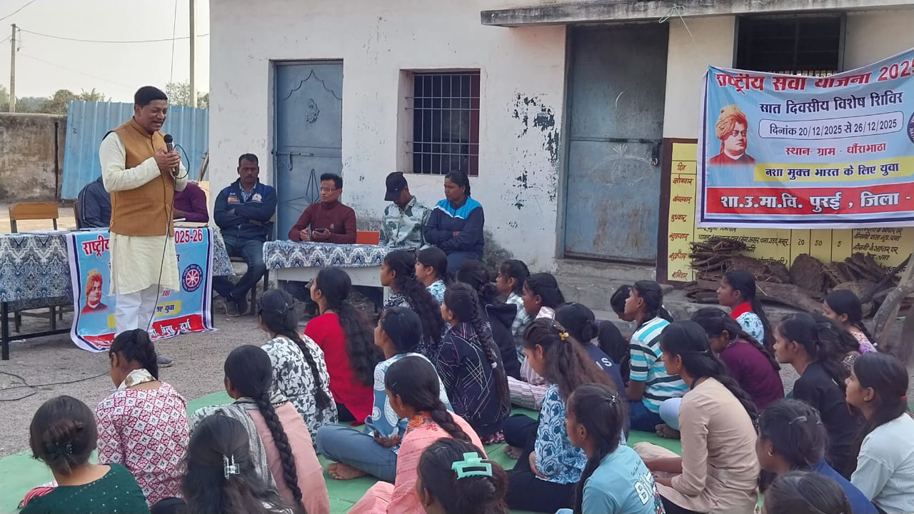 23-12-2025 (मंगलवार) को समय दोपहर 2 बजे, ग्राम धौराभाटा में आयोजित NSS कैंप के अंतर्गत Divine Workshop का सफल आयोजन किया गया। कार्यशाला का मुख्य विषय “नशा मुक्त भारत” रहा।