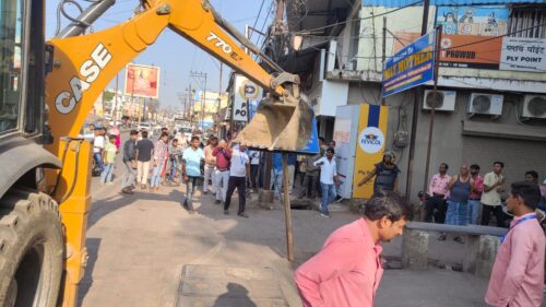 रायपुर – आज रायपुर पुलिस कमिश्नर डॉ. संजीव शुक्ला और रायपुर जिला कलेक्टर डॉ. गौरव कुमार सिंह के आदेशानुसार और नगर पालिक निगम रायपुर के आयुक्त विश्वदीप और यातायात एसपी अजय कुमार के निर्देशानुसार एएसपी यातायात विवेक शुक्ला, नगर निगम अपर आयुक्त नगर निवेश पंकज के. शर्मा, नगर निवेशक आभाष मिश्रा, कार्यपालन अभियंता नगर निवेश आशुतोष सिंह, नगर निगम जोन 2 जोन कमिश्नर संतोष पाण्डेय, जोन 4 जोन कमिश्नर अरुण ध्रुव,जोन 5 जोन कमिश्नर खीरसागर नायक सहित सम्बंधित यातायात पुलिस प्रशासन एवं नगर निगम मुख्यालय नगर निवेश विभाग उड़न दस्ता, नगर निगम जोन 4 और जोन 5 नगर निवेश विभाग की टीम द्वारा राजधानी शहर नगर निगम रायपुर क्षेत्र अंतर्गत जोन 2, 4 और 5 क्षेत्र अंतर्गत बूढ़ेश्वर मन्दिर चौक से पुरानी बस्ती, लाखेनगर, सुन्दर नगर रोड और पंडरी मार्ग में टीम प्रहरी अभियान अंतर्गत बाजार क्षेत्र में विभिन्न प्रमुख मार्गो को अतिक्रमण से मुक्त करने व्यापक अभियान के अंतर्गत जनहित में जनसुविधा की दृष्टि से सुगम और सुव्यवस्थित यातायात देने सभी दुकानदारों को पुनः एक बार समझाइश दी गयी कि वे सड़क पर कब्जा ना करें, अन्यथा की स्थिति में सड़क पर रखे उनके सामानों की यातायात जाम की समस्या दूर करने जनहित में सख़्तीपूर्वक जब्ती कर ली जाएगी, इस स्थिति के निर्मित होने पर सम्बंधित कब्जाधारी दुकानदार स्वतः जिम्मेदार रहेंगे .