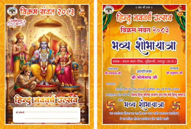 रायपुर (गुढियारी) – अक्सर हिंदू नव वर्ष,रामनवमी या अन्य प्रमुख त्योहारों के अवसर पर आयोजित की जाती है।इन यात्राओं में बड़ी संख्या में श्रद्धालु,राम भक्त और स्थानीय नागरिक शामिल होते हैं,जिनमें जय श्री राम के उद्घोष के साथ शोभायात्रा निकाली जाती है, जिसमें झांकियां भी शामिल होती हैं।
