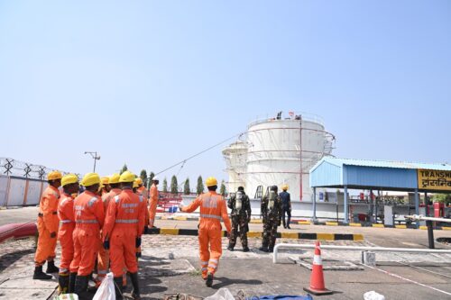 मॉक ड्रिल की शुरुआत दोपहर 12:18 बजे एमएस ट्रांसमिक्स टैंक से उत्पाद के ओवरफ्लो की परिकल्पित स्थिति से की गई, जिसके बाद लेवल-1 आपातकाल घोषित किया गया। उत्पाद की निकासी के दौरान 12:24 बजे काल्पनिक आग लगने की स्थिति उत्पन्न हुई, जिससे लेवल-2 आपातकाल घोषित किया गया।